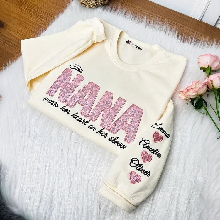 Wear your love on your body – Custom embroidered glittery vinyl mom sweatshirt