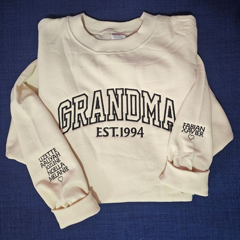 Custom Mama Embroidered Sweatshirt With Kids Names Sleeve