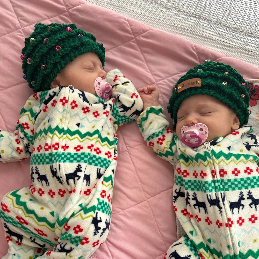 This handmade Christmas Tree Hat is crafted from soft, high-quality wool yarn, offering warmth and comfort while celebrating the festive season. Each hat can be customized with a leather name patch, creating a unique, meaningful holiday accessory for kids and adults alike.